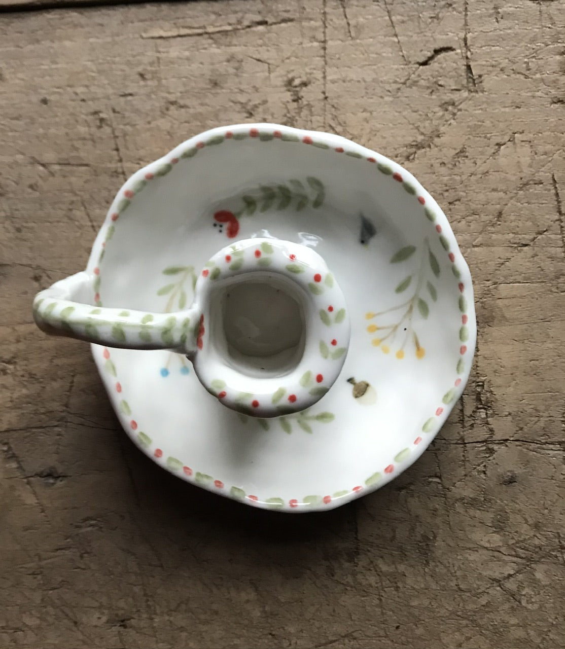 Handmade and handpainted porcelain item.