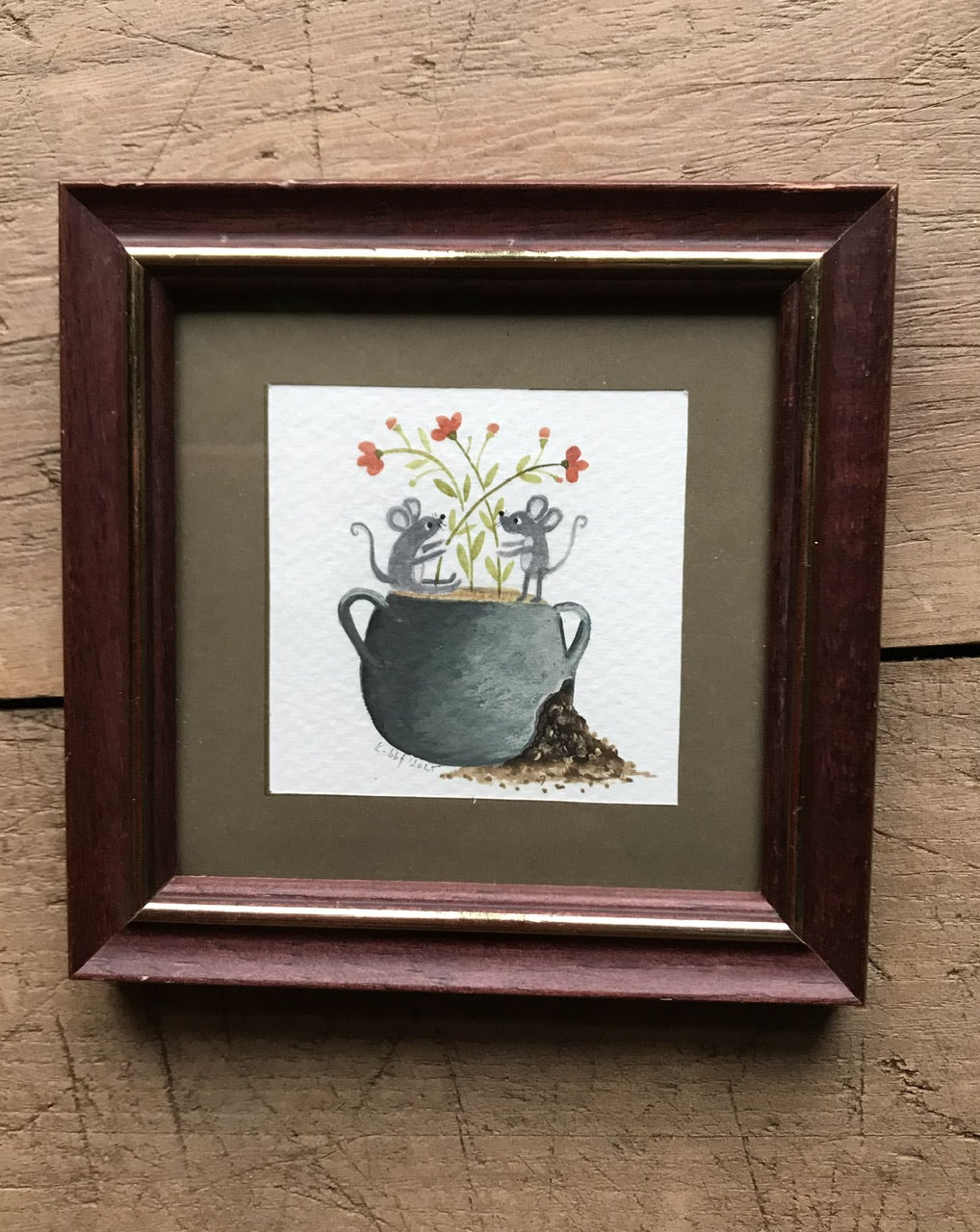 Original painting. This illustration is painted on cold pressed watercolour paper 300g/m comes with a vintage wooden frame.